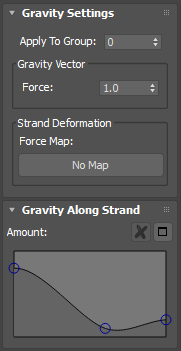 This modifier is a helper component to allow you to cheat the effect of gravity on hair quickly and intuitively. A special Ramp Curve control lets you adjust how much gravity is applied along the length of the strands (this can also be controlled through a map). You can also control gravity direction and global amount.