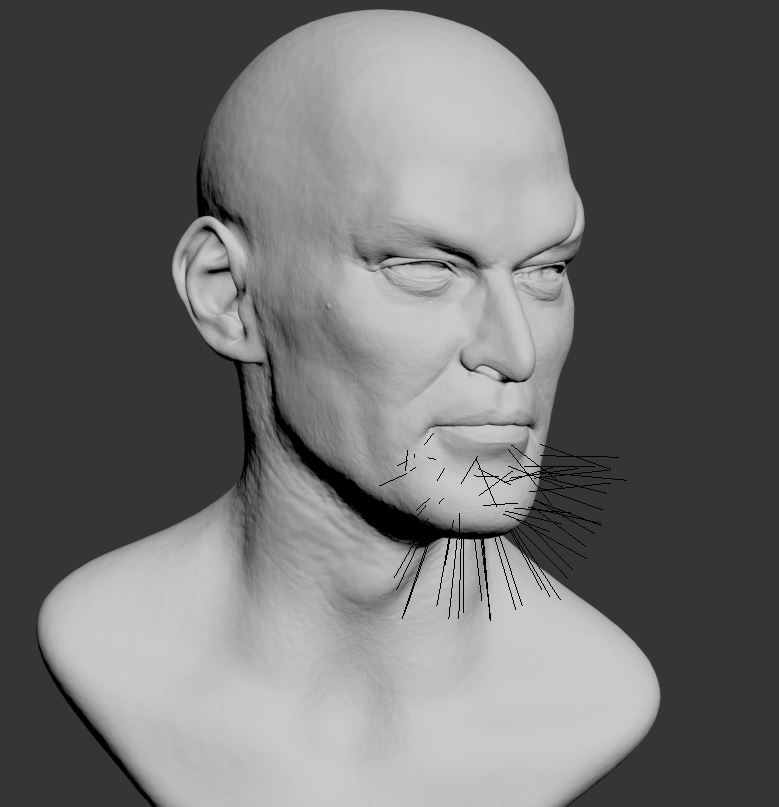 I chose the chin beard to start. For still image it is better to divide the beard into 3 parts. I defined a distribution map for the first part: