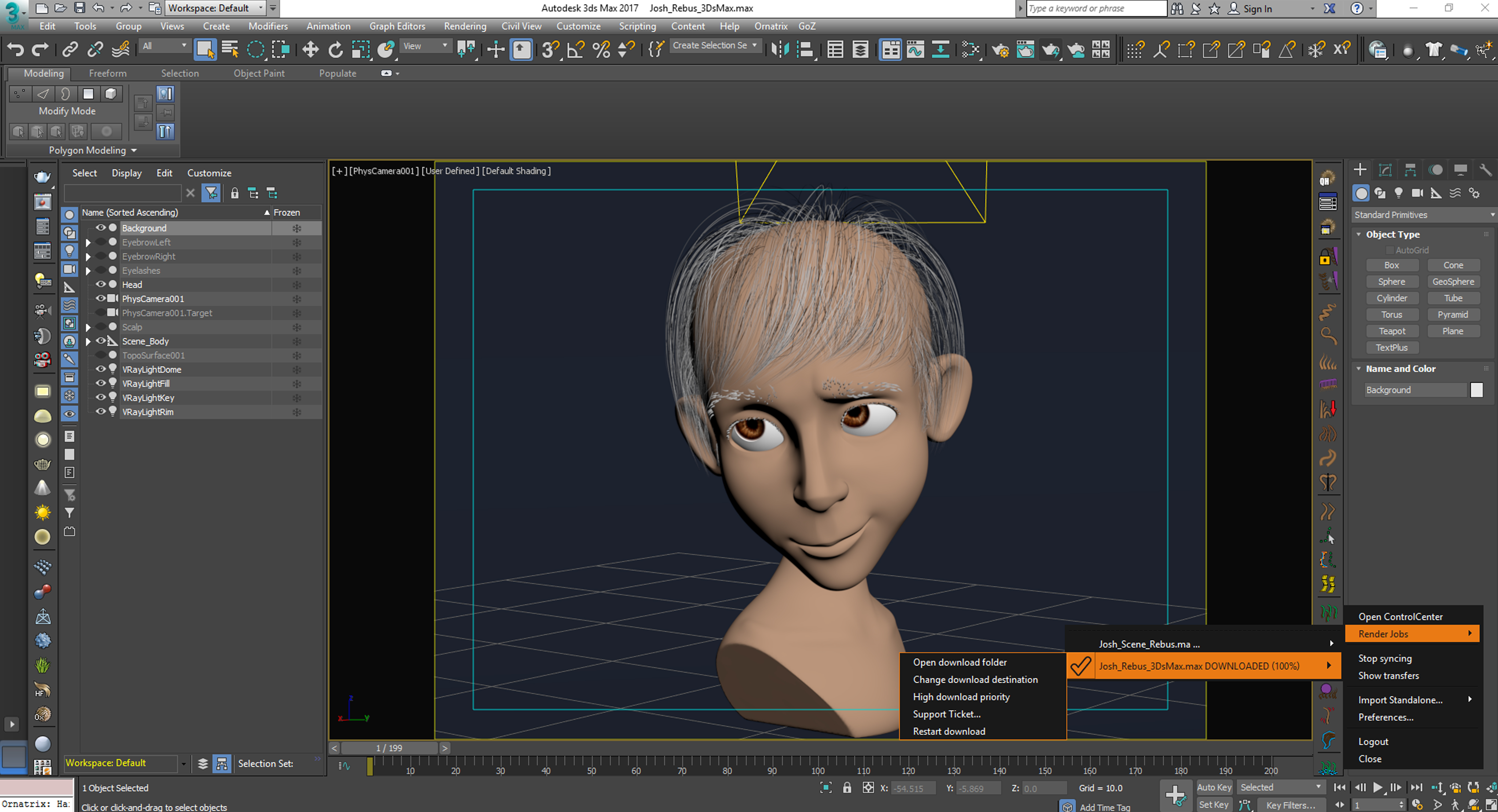 Wait a few minutes and we have the render ready. Your scene will start to download automatically, you only need to open your RebusDrop and verify it when everything finishes.