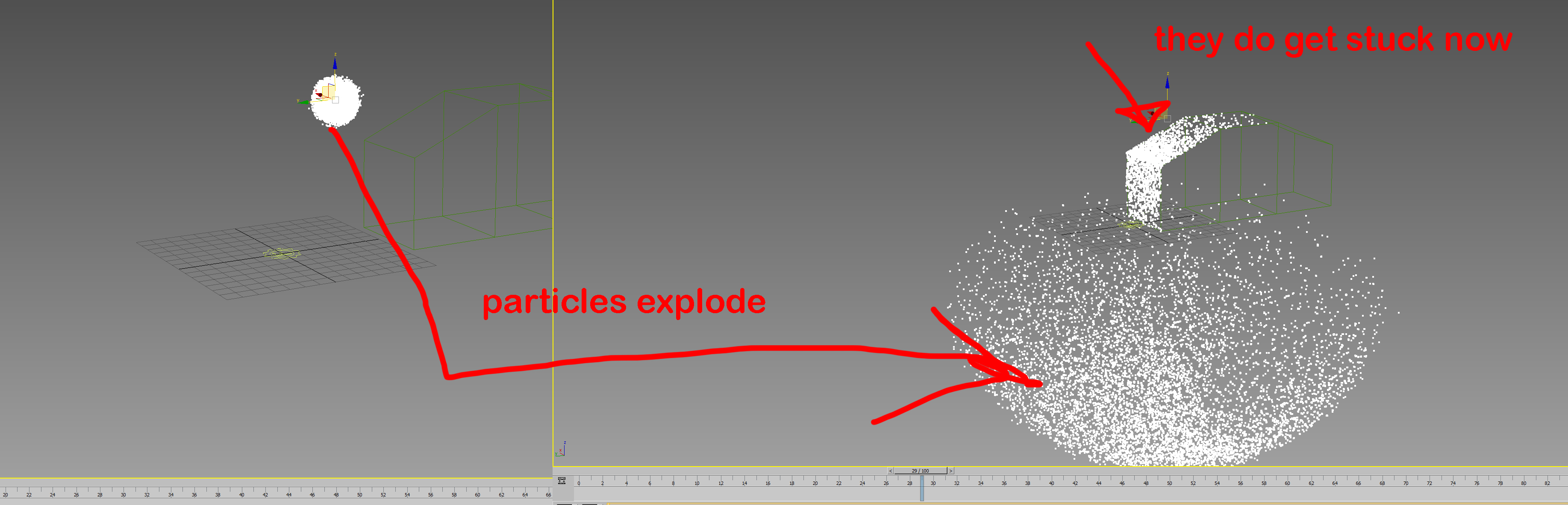 | yes Box is set as convex and they explode a lot too when you increase adhision. But as far as sticking to a moving object none of the particles stick Thanks i attached 3ds max file |