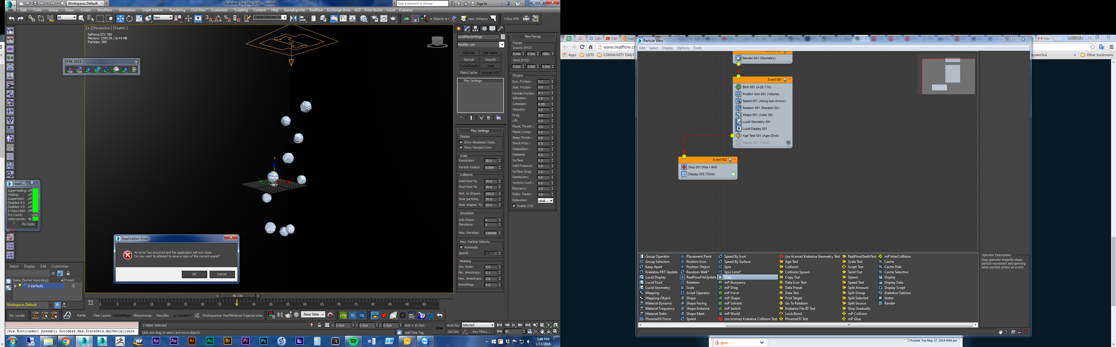 Result: 3ds max will crash as soon as one particle leaves event001 and enters event002
