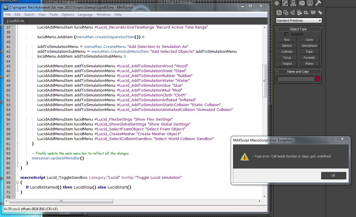 Hello, I downloaded the latest version( 1.0.0.6383) of Lucid and installed to my work station, but it does`t work properly. When I launch Max I get an error message(error01.jpg). After Max has been launched, if I click "Toggle Lucid Physics", I get the another error message(error02.jpg). I also updated the graphics card driver to the latest one. Could I ask you what causes the issue and help me? Thank you very much! My workstation`s specification is -Nvidia Geforce GTX650 -Win 7 Proffecional 64bit -core i7 950 -RAM 36GB So Ishigaki |