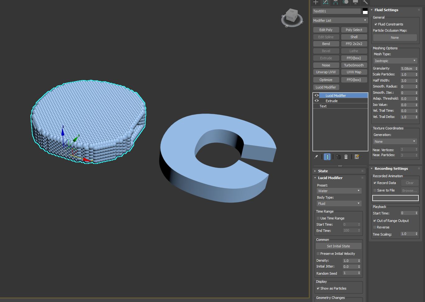 I'm having trouble turning concave shapes into fluid objects. E.g. an extruded 'C' - I'd like this to be made of water so I drop and splash it. I've attached a screen grab.
