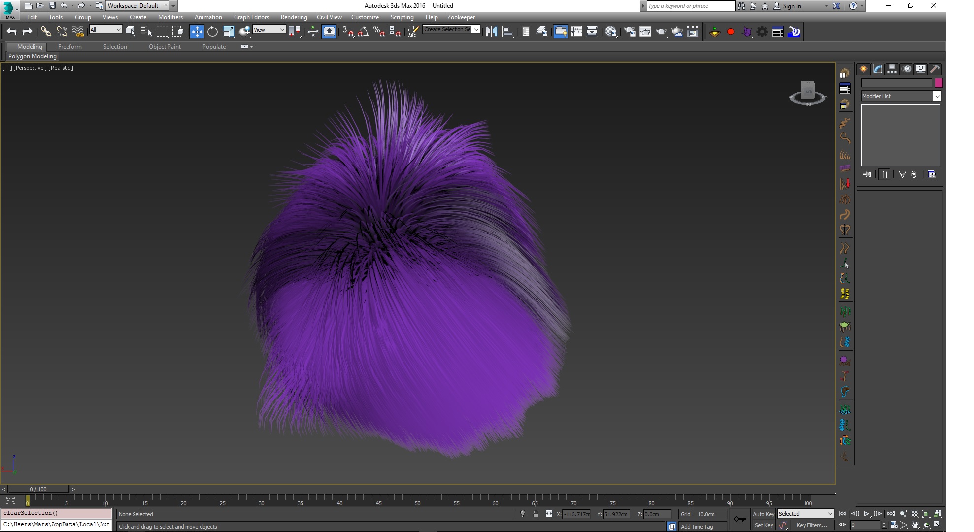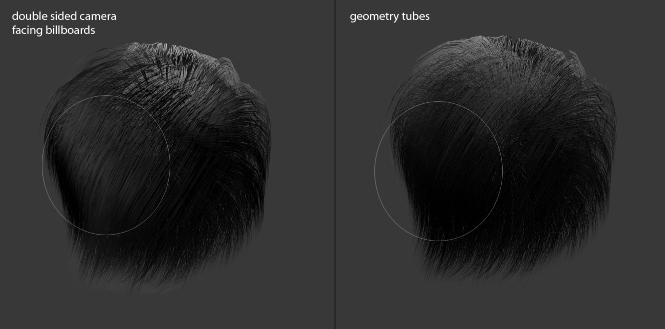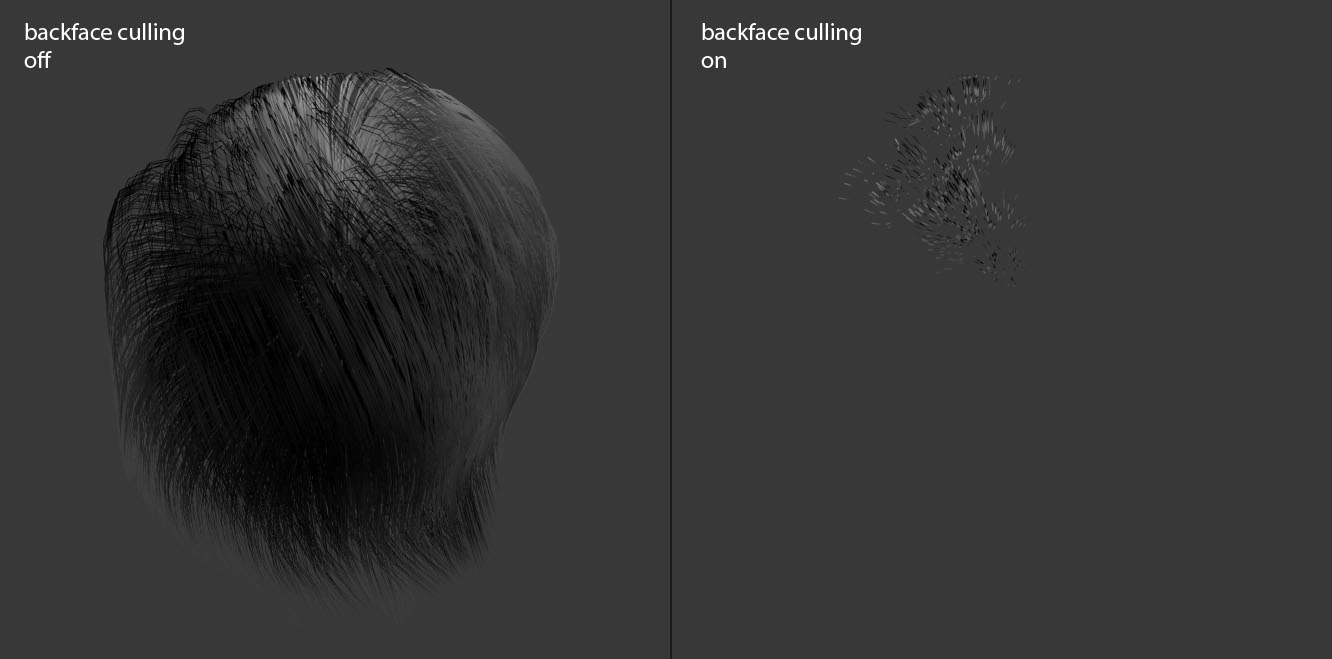 | Description: | The polygon viewport hair display normals seems to be facing the wrong way. When I crank up the max viewport hair facing camera to 10000, all my viewport hairs disappear when backfacing is checked off. When it's checked on, lighting looks wrong. I just use a sphere with hair as a test and comb the hairs down.