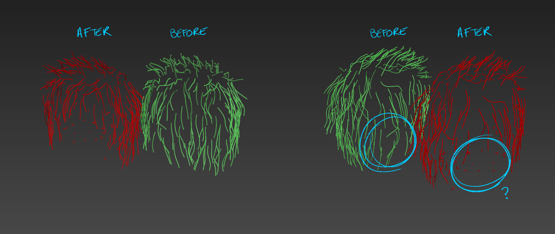 | Description: | Hello, A part of or all the hair guides disappear, or sometimes become all curled up, or extend in unpredictable ways, or start stretching into infinity without being selectable. This happens, still randomly, even when the strands have become meshes through your modifyer or when the work is started over from a previous OXH export. In conclusion, it's impossible to work with. (See images attached) I use 3dsmax 2016 and 3 different builds of the software were tried: |