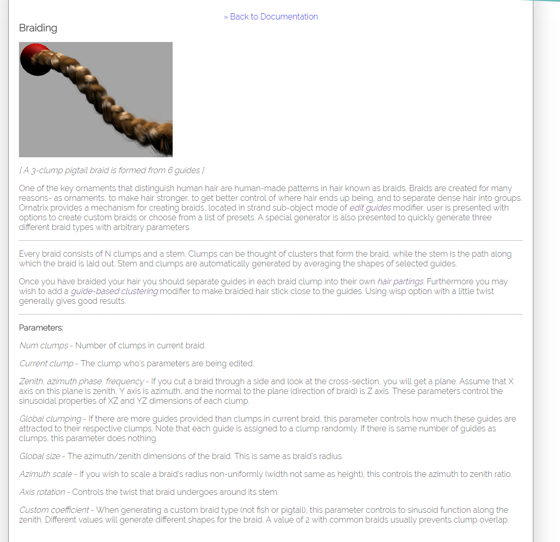 | Steps to Reproduce: | 1 - go to the following page : 2 - click on the edit guides link OR hair partings OR guide-based clustering. 3 - The linked pages are broken and don't show any pertinent information on the issue. Only written warning is ''Document not found, please make sure you have the correct name''. |