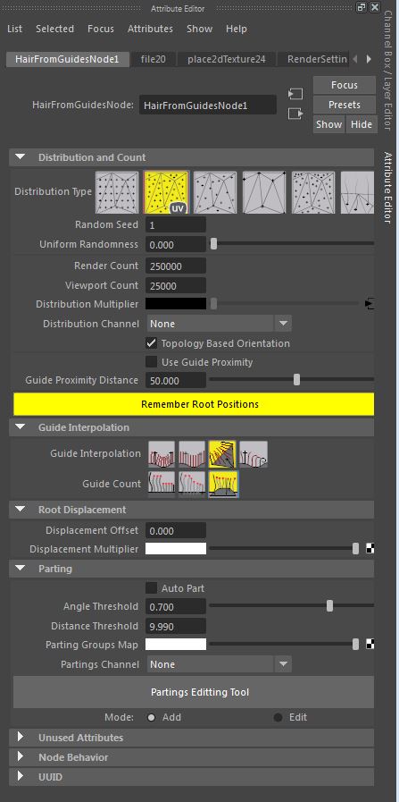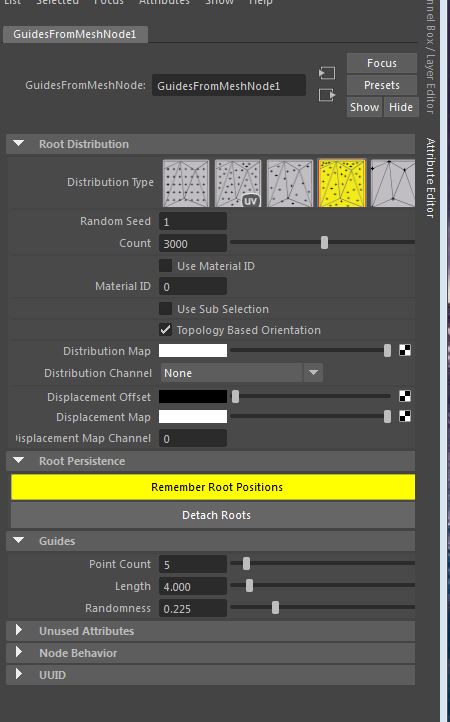 | Description: | Hello! Me again, here with my furry monster. There is an issue a lot of people in my class seem to be having where when a character is animated, if geo compresses, the hairs switch to whichever guide gets closest to them, thus resulting in unattractive random flickering on the character. (of you look at the Left cheek of this character) We have "remeber root positions" turned on and distribution type is at UV (the only one that seems to be working for us)