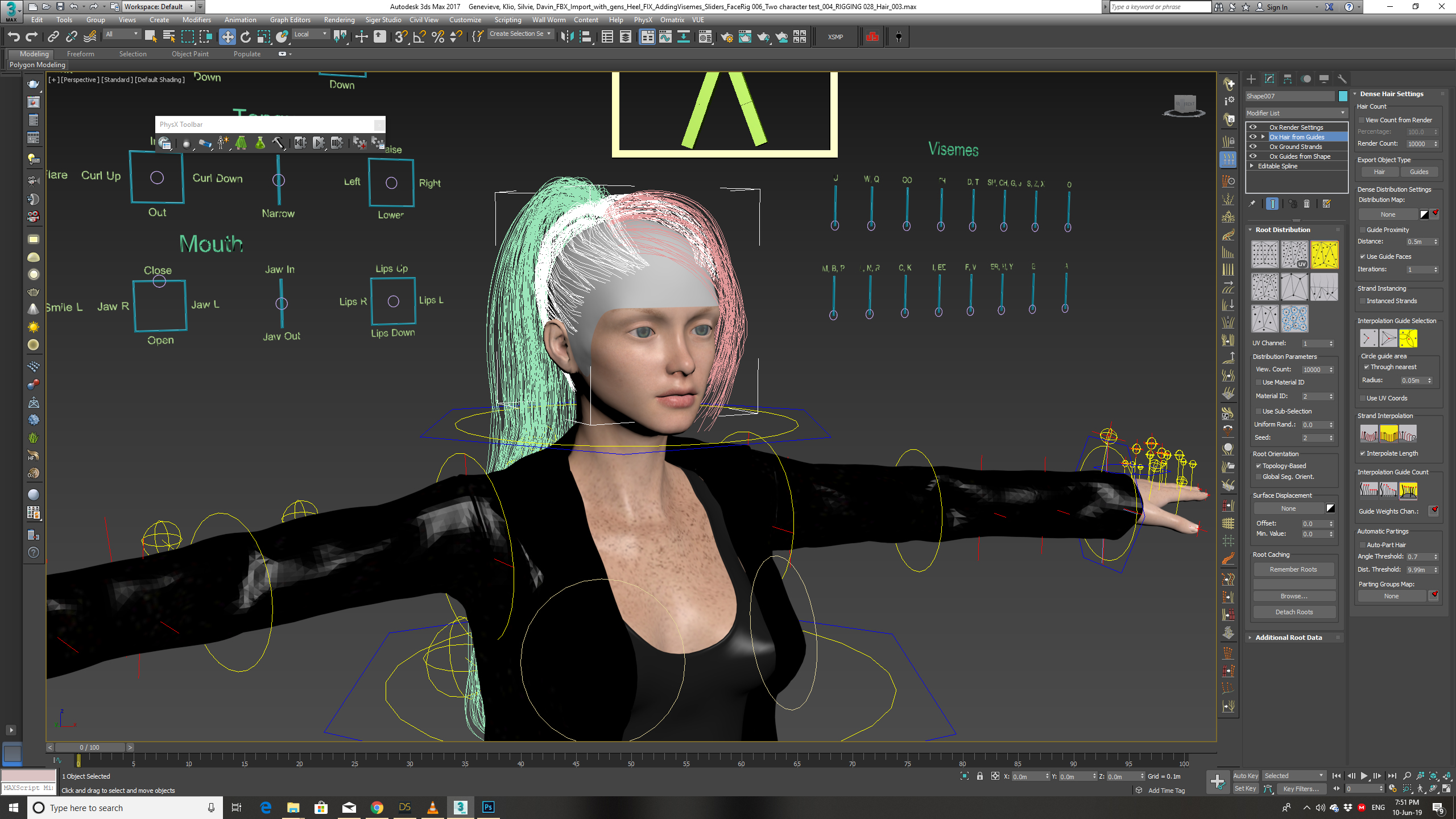 Hi. I've used a geometry mesh to create editable splines as a guide for the hair. I've been following a tutorial for the placement of my modifiers although I'm not sure whether I've left some thing out as I am not getting a visual display of the hair in my viewport. I thought I'd get a visual display once I added Ox hair from guides. Not sure whether I've missed something.