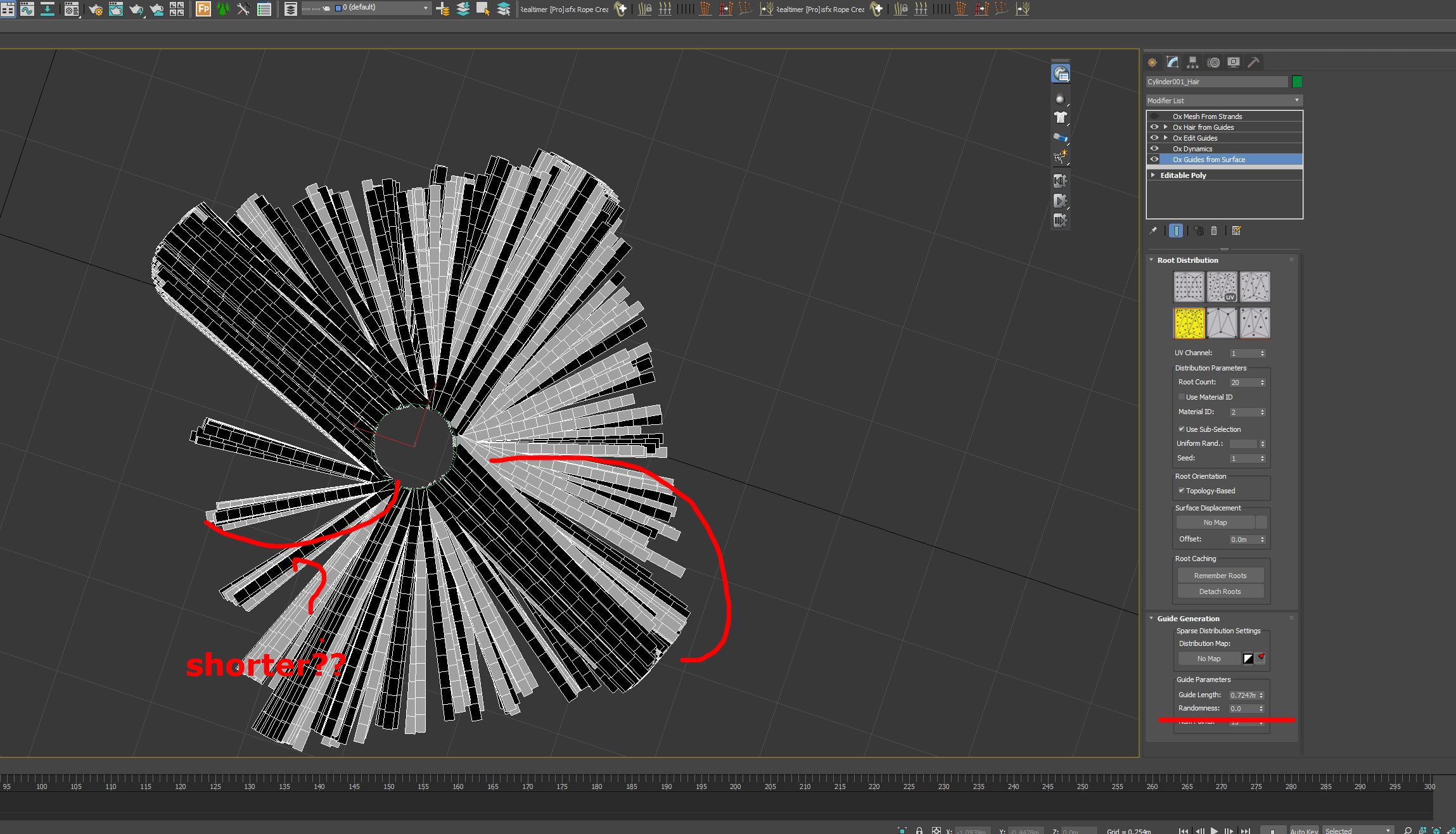 OK. I think i kind of know how to but why hair guides have different legnths even though random is 0. Thanks
