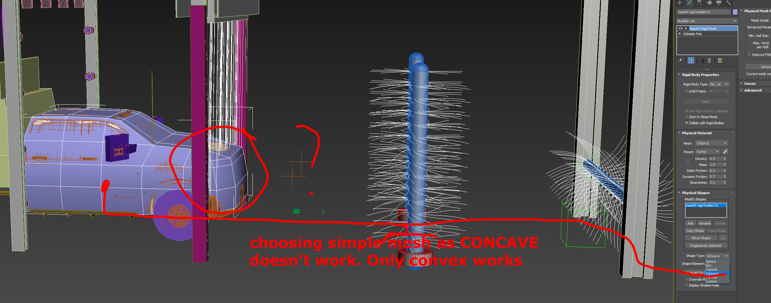 Were you able to find out why? Also choosing my rigid body as concave will not work with hair. Is only convex allowed? Thanks