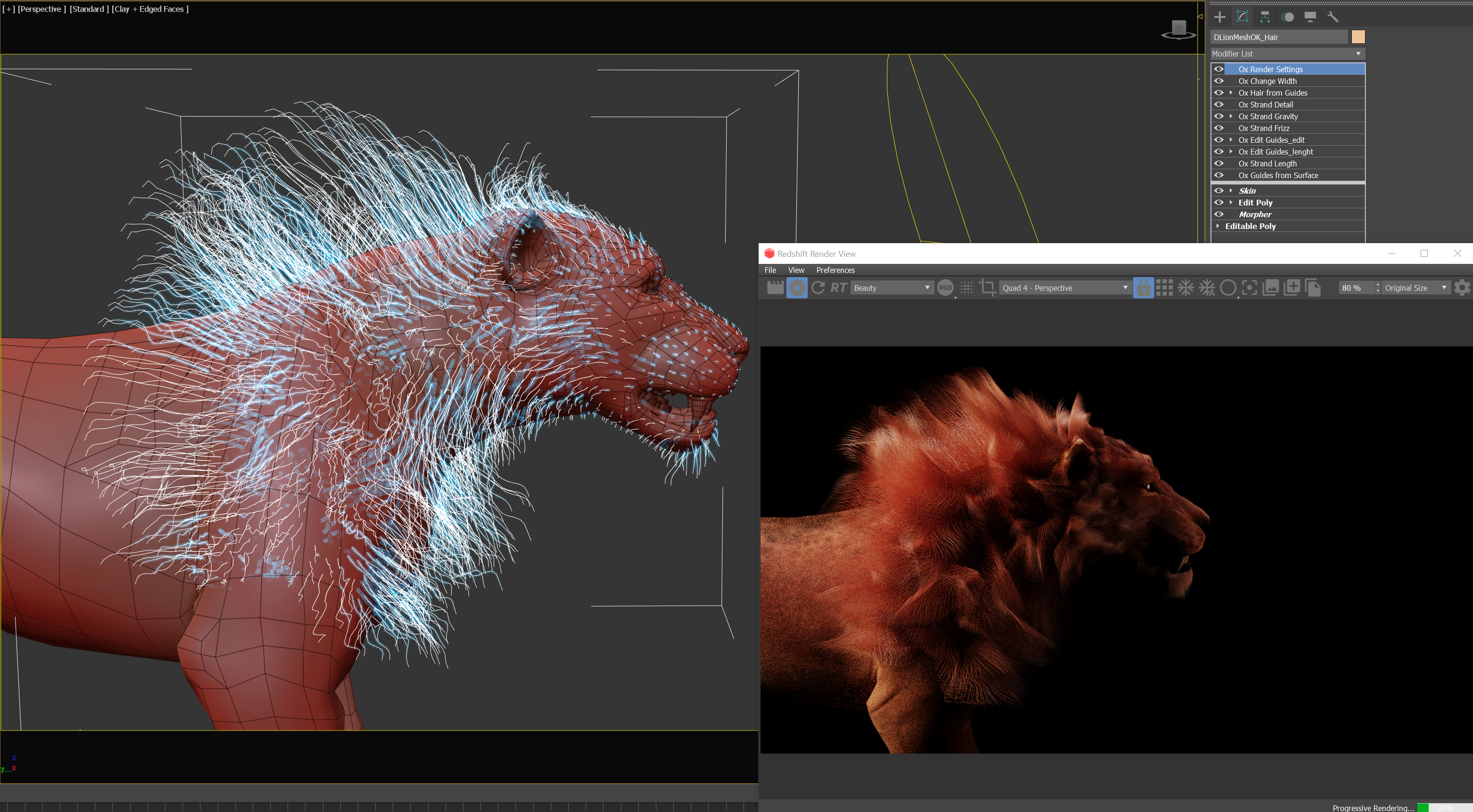 Regarding the workflow, I think the best approach is to have multiple hair systems for each hair tyle: Mane, short fur, wiskers, ears, inner ear, etc... This allows for better control and less complex hair stacks. Also is better for debugging.