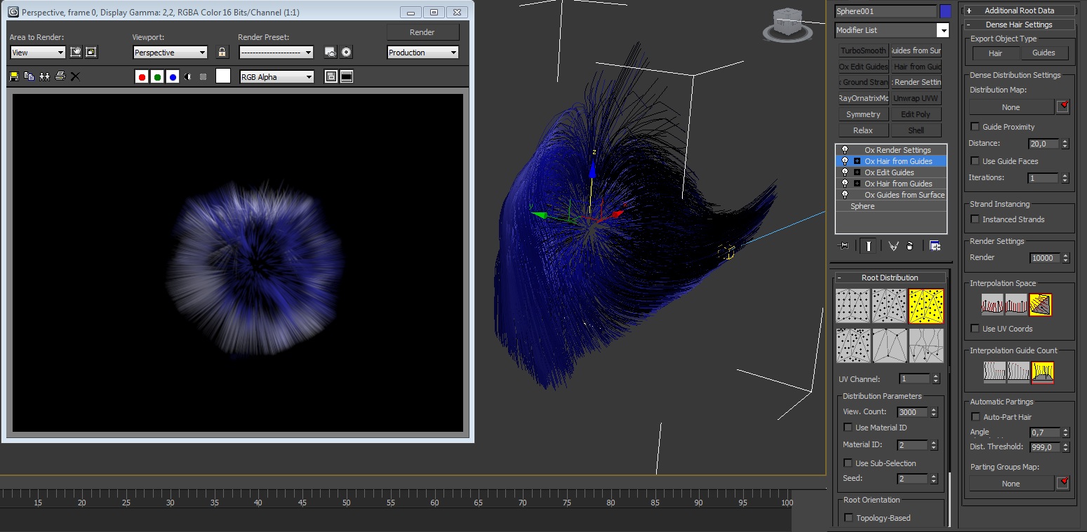 I start with few guides, comb them, then add a hair from guides, select guides instead of hair, increase the guide count and then I add an edit guide to comb the guides but this time with more guides (I dont know if I'm being clear). I repeat the process till I'm satisfied with the hairdo and the guide count. The thing is that when I render the hair it doesnt render what I see on the viewport, the hair is all messed up. Here's a screen capture with the viewport and the render. I'm following the "making of Stan" video on youtube and the guy gets the hair right.