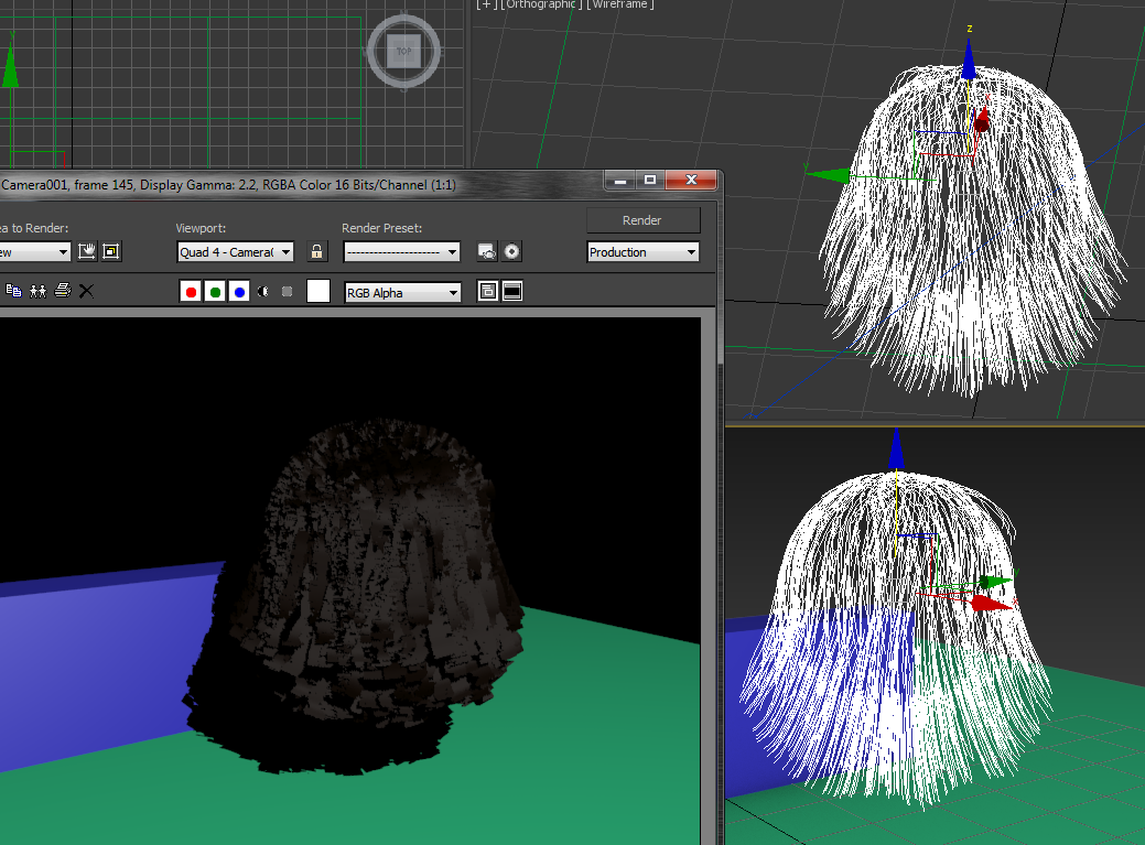 I've been experimenting with using cloth dynamics, which is working fine. Upon render though, the cloth 'strips" still show up. It looks like hair in the viewport but the render is rendering the cloth strips. I did render out keys and collapsed the stack because the cloth modifier was crashing. I then applied Ornatrix mods to the mesh. Will this method not work? |