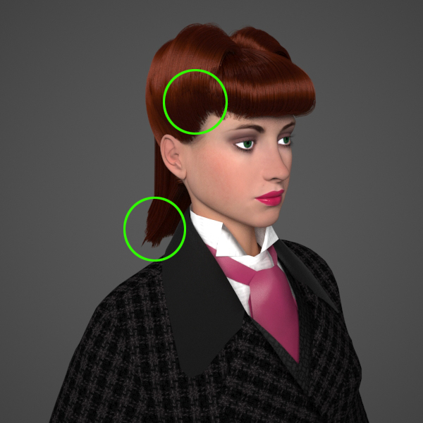 | Hello, I have taken a look at your scene. 1>I don’t see any long flat sections 2>When I brush the hair it moves in the correct direction of brushing 3> It looks like the hair follows the guide splines well for the front and back to a certain extent. Again I would say this depends on the guides. In the front were you have a good deal of guides its working well. In the back is OK but there are not guides for much of the mesh. The same is true for the sides. You can see in the example I did for you in the other thread its a good idea to reduce the mesh cap or increase the guides that you have so that you have proper coverage. If not there will be interpolation that may not be a exact as you would like. 4> You could use the brush tools with a small brush or the root and strand tools to do this. There is a video on styling that goes over Root and Strand options that I think can help you here. Thanks Michael PS: If you have a scene that shows teh brushing issue or the strait sections issue please feel free to post its with a list of steps to reproduce the issue. IE 1. Open the file 2. Select "XXX" 3. In Edit Guides use brush tool and brush out the left side. Also if you would like to make a short screencapture video that may help us to see what you need help with. |
