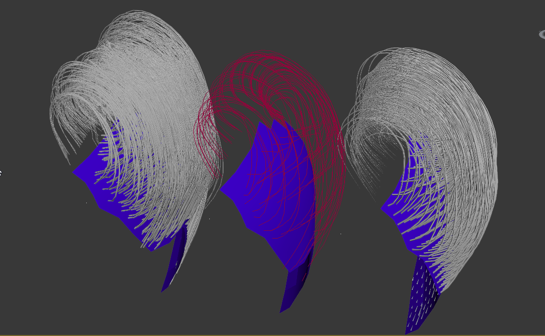 This is where I had got with what I could figure out before I gave it up as a lost cause. Example attached. The main reason is once you get the hair close to what you want there is no way to edit or brush the final bits into position without destroying what is already achieved. The only thing i can see in what you did was to used more guides than I did and still the hair in places is tweening incorrectly. I have watch the video, the guy is a great artist but not much of a communicator. Still it's the only thing out there . Unfortunately for me a hairstyle like that isn't what I'm on about. You can easily brush this hairstyle without to much hassle. Another case is when you have brushed a longer hairstyle and mass FX is a non starter, you try the cloth approach but all the cloth strips are now intersecting? You now can't have self collision but still simulation times are huge only to find there are some setting issues but to resolve them will take an eternity. Once again here is where you need a real world example of how an expert would approach this problem. Your example have little to offer one trying to resolve this problem. Then you will try another style and run into a hole set of new problems with only trial and error to find your way. | |