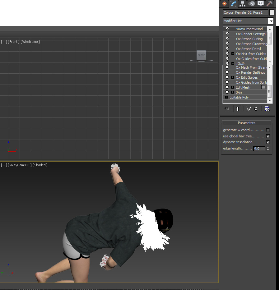 3 - I cached hair the hair and turned off skinwrap, but the issue remained.