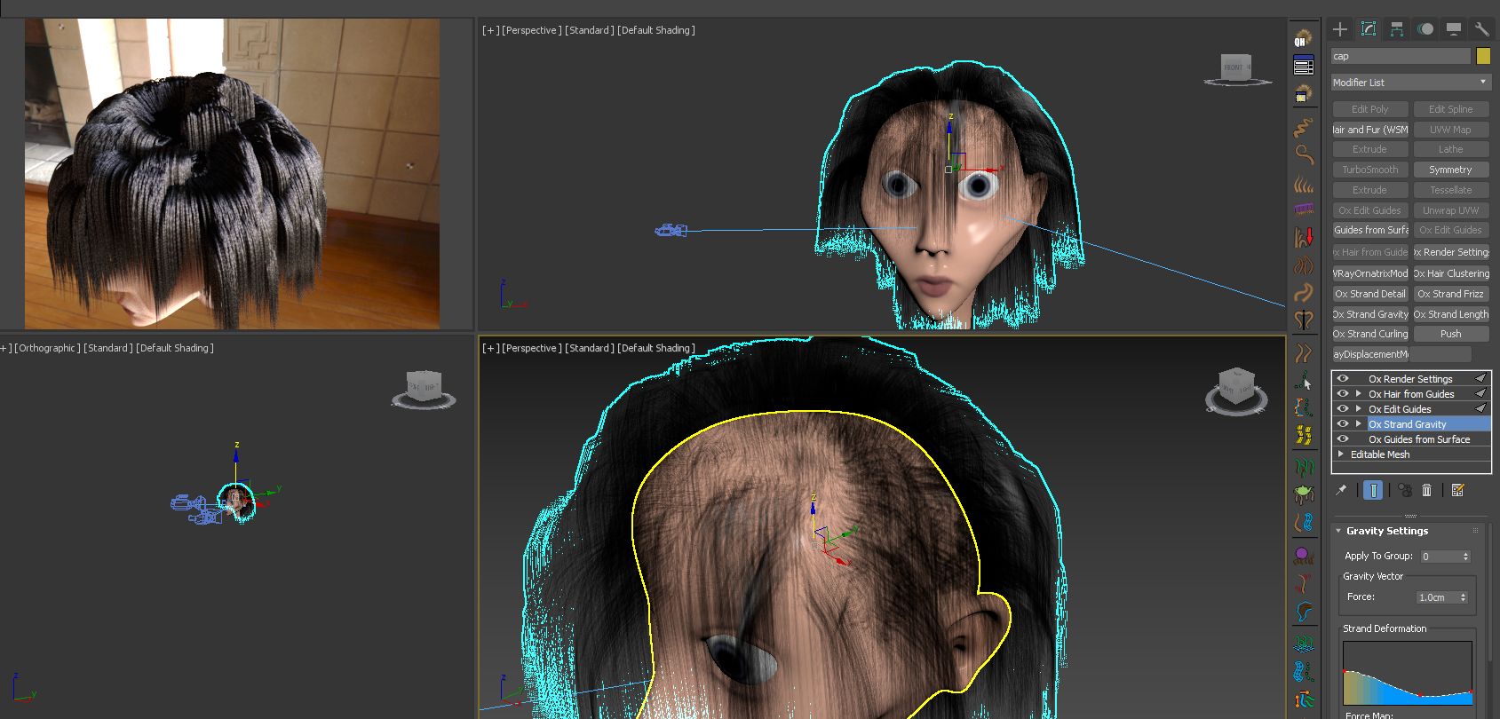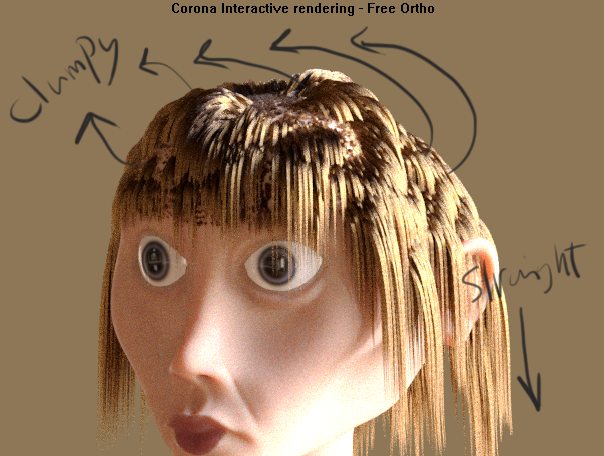 | Managed to improve the chunky effect a little by playing around with Strand Deformation in Gravity Modifier, however now im getting these weird spots... P.S: when I use the cut brush to groom the bangs it also affects the hair at the back, how do I activate the backsfacing? Attached Files:  |