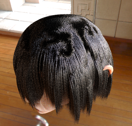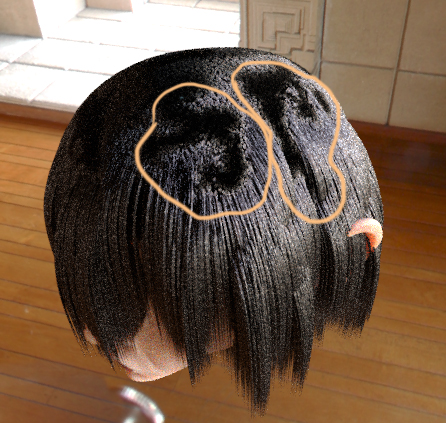 Hi, Why is the hair not uniform in all places? I want the hair to be straight like the ones I refered to in the picture, for some reason the bangs and the hair on the top is very clumpy and in chunks. Is there a way to fix this so the hair looks the same and uniformed at all parts? Thanks. |