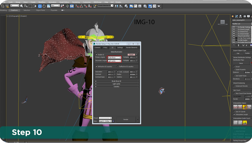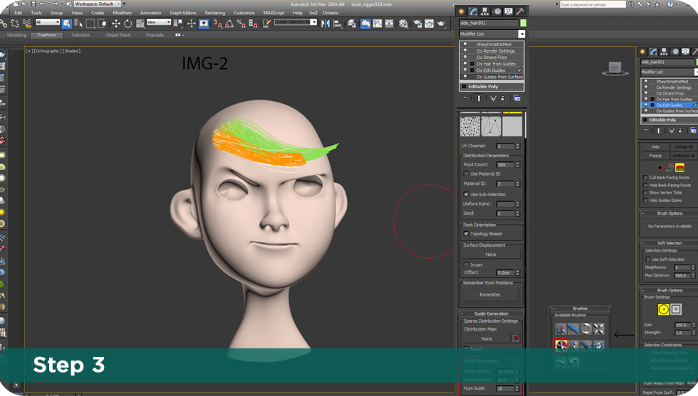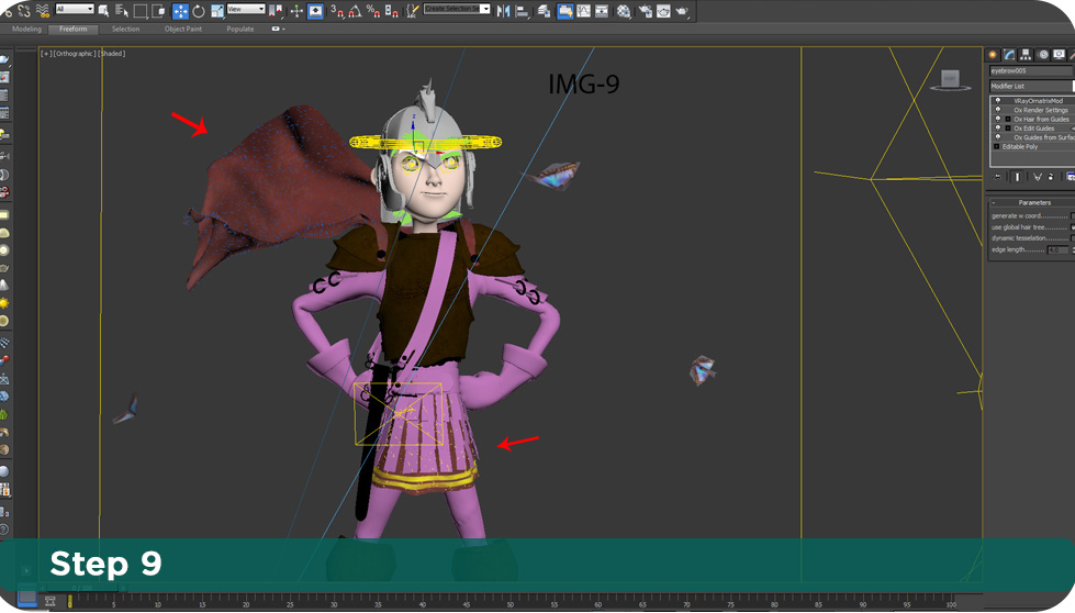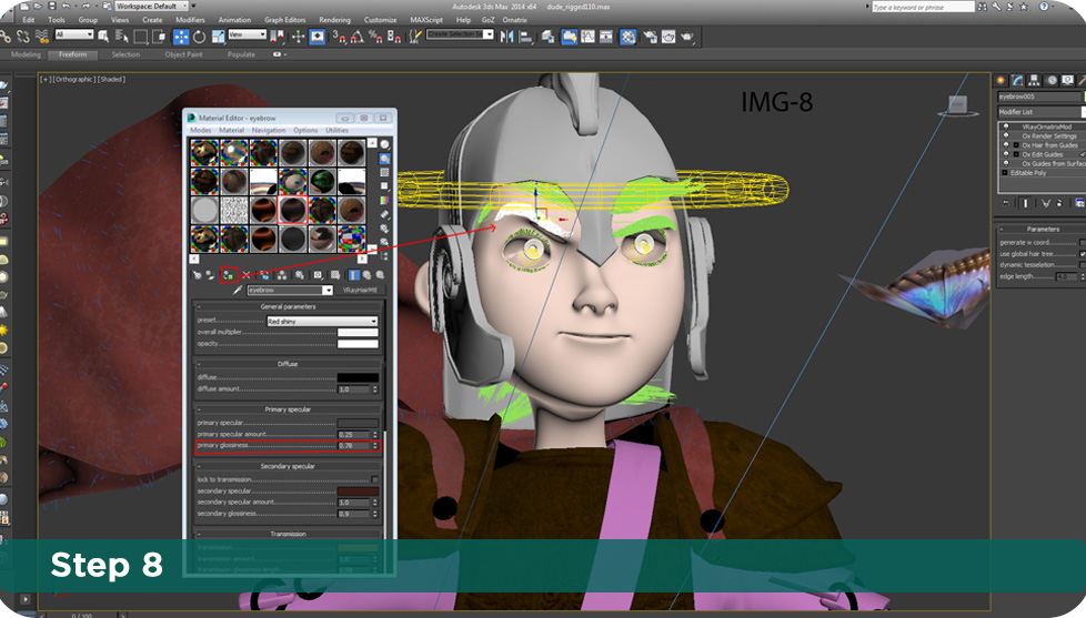"It's surprisingly easy to use!" - Jonfer Maia About the artist: Jonfer Maia Jonfer Maia is a very talented self-taught artist from Curitiba, Brazil. His work can be found on Behance website and his facebook page. Jonfer mainly specialises in cartooning, digital Art, and character Design. In this tutorial Jonfer will show you how he has done Little spartan kid's hair and cloth detail using Ephere Ornatrix . Hair tutorial in 10 easy steps! For this character I selected some of the faces I wanted the hair to grow from. I detached a few polygons as a new object to apply the Ornatrix modifier. I then added a "Ox strand Detail" with the default settings to have some smoother hairs. With the hair modifier applied, I used the brush tool / Comb brush and the "cut brush" to stylize the hair the way I wanted. In "Ox guides from surface" you can change the lenght of your hair on "guide parameters".You can also use the "Ornatrix strand Length" to do that which I did not need for this project. Now it's time to use "Ox hair from guides". I kept "Random (area based) base distribution with the hair count in render as 1000 for each group I created. This part is a very experimental and you have to tweak these settings to get the amount of hair you want. Anything else here I kept as default. For some hair groups I used the "Ox Strand Frizz"modifier with those settings just to get a very slight variation between some hairs. In "Outliers" I put a very small percentage of 0.04 and tweaked the frizz amount just to separate the hair a little bit. The hair style I wanted doesn't need much more than that so use those settings accordingly to your needs. In "Ox Render Settings" I used a global radius of 0.02cm and changed the "spike" fallof from the root. That's it! Now it's time to apply some shader for this hair =D. The hair shader is the "vrayhairmtl" with "Red shiny"preset and everything else as default. I "Unchecked" everything but "Use cached gi". Use Cached GI - this option is similar to the Use Irradiance Map option for the VRayMtl material; if it is disabled, the hair material will always be calculated with brute force GI. Chaos Group. Just select the hair group and click on "assign material to selection" to apply the shader. For the eyebrows I have done the exact same thing as for the hair. I selected a polygon group to grow my hair from, I then cut and stylized it using the same brushes. I duplicated the shader in a new slot material and changed the primary specular settings a little bit. The "primary glossiness" with a smaller amount and also changed secondary specular color to make it darker. Select the eyebrows and apply the shader to it as we did for the hair. As you can see in this image, I also used Ornatrix for the clothes. I only tweaked the hair length on "Ox guides from surface" modifier and changed the render count to 20.000 on "Ox hair from guides". That's you need to do in this part. One last tip is to use Gi enabled with brute force as primary engine and Light cache for secondary engine. That way you get a nice quality in conjuction with a good render time. That's it! Here is the final result with the render and some color correction in photoshop. I hope that helps you to get started using Ornatrix. Thanks! Marsel Khadiyev (Software Developer, EPHERE Inc.) |