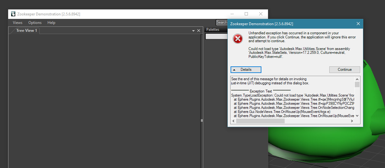 Hi, I thought I would give Zookeper a try. After installing the demo and selecting zookeeper from the menu in 3DsMax I get an error and then a crash.. (See attachments) I am running 3dsMax 2015 and Windows 10 Attached Files:  |
