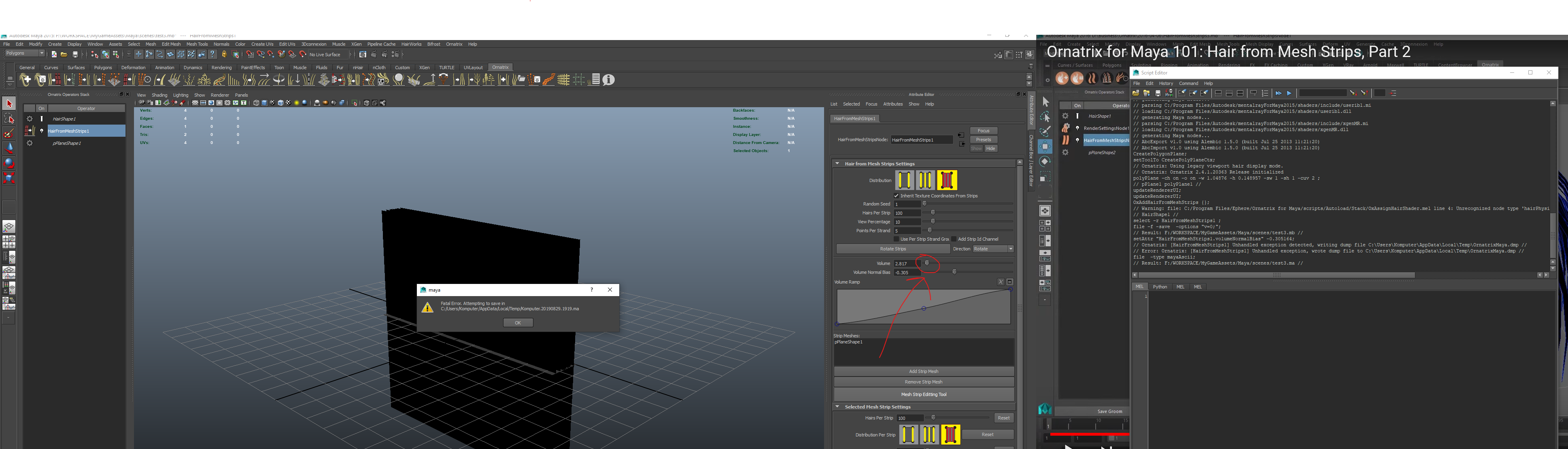 | Title: | Settings Volume of Hair from Mesh Strips crash Maya. |