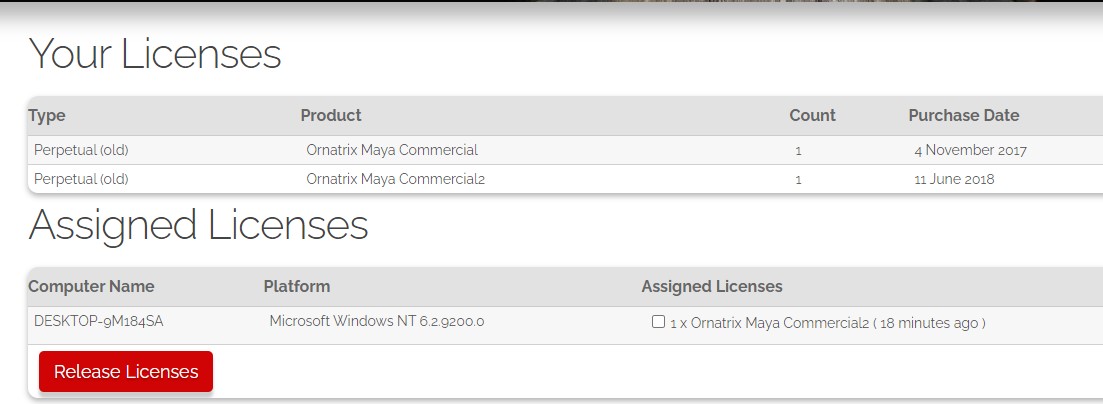 | In this case you just need to release your license and reinstall Ornatrix. You can release your license in your user profile > My Licenses. I will double check why your account appears to have two licenses instead of one. Jeordanis Figuereo (Product Designer. EPHERE Inc.) |
