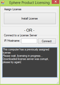 | Description: | I went to load Ornatrix for Maya today after the most recent update and was prompted to reinstall the license, with the notice, "This computer has a previously assigned license." I went ahead and tried to install an updated license, but I just get the same notice, plus: "Downloaded license server was corrupt, please try again." I confirmed that there's no license server currently running in my services, etc. at the moment. Is this a bug, or am I missing something? |