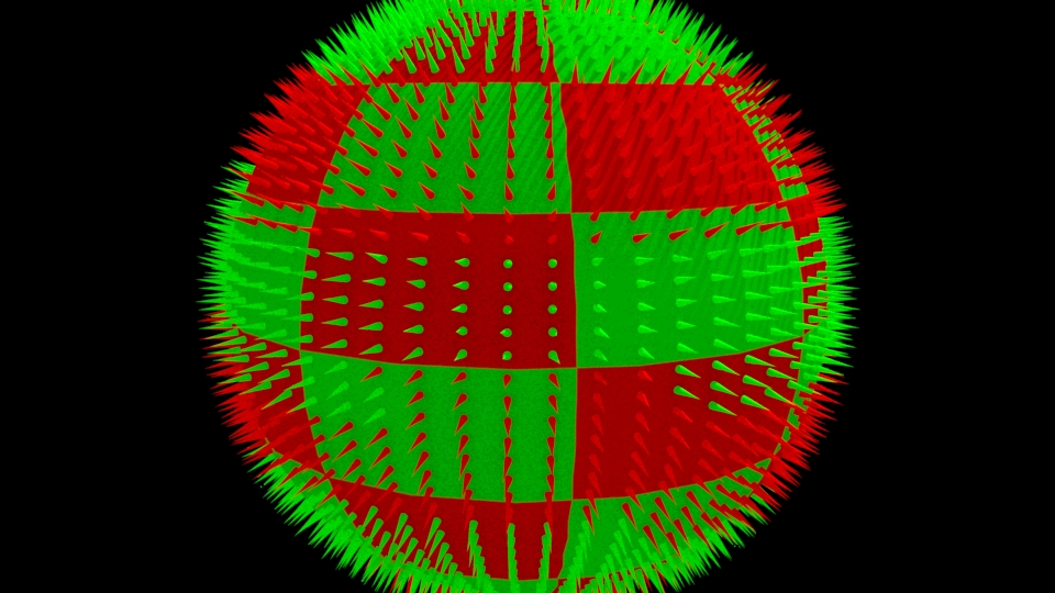 Create a sphere Add a vrayMtl + a checker texture in the diffuse. Set colors of the checker to red and green. Apply the mtl to the sphere Add basic fur on your sphere with ornatrix Add the same mtl Render