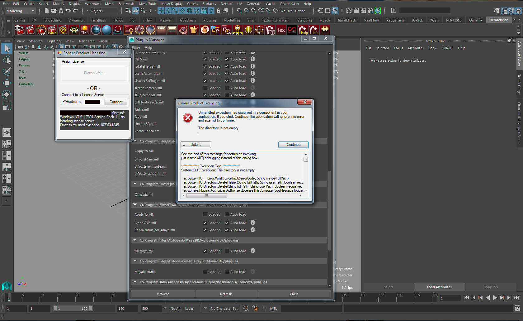 | Description: | Hi, I've installed ornatrix, but when I activated the plugin in maya the installation of the license server was stopped by my anti virus. I ignored the message but when I went to run the installation again I got a message saying 'processre returned exit code 1' The product licensing window says a license has been assigned but I cant activate the pugin. Thanks |
