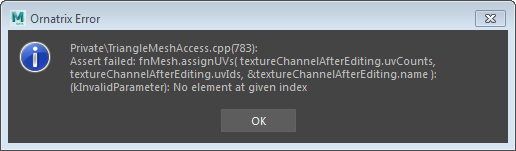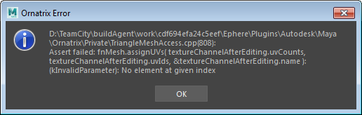Ornatrix Error: Assert failed (8): fnMesh.assignUVs( textureChannelAfterEditing.uvCounts, textureChannelAfterEditing.uvIds, &textureChannelAfterEditing.name ): (kInvalidParameter): No element at given index
