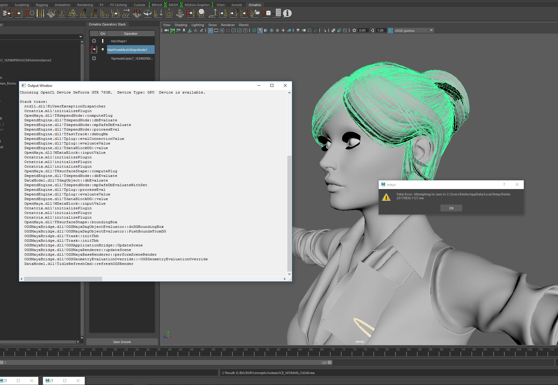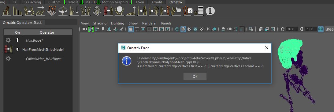 | Description: | Hair from Mesh strips crashes Maya 2017 with latest builds. This is the first attempt I have made to use Ornatrix in Maya 2017 (used to use it in 2016). I reset the liscences and redownloaded the latest install to add it as a plugin in 2017. Then tried to create hair from mesh strips but it crashed every time I gave it a go. |
