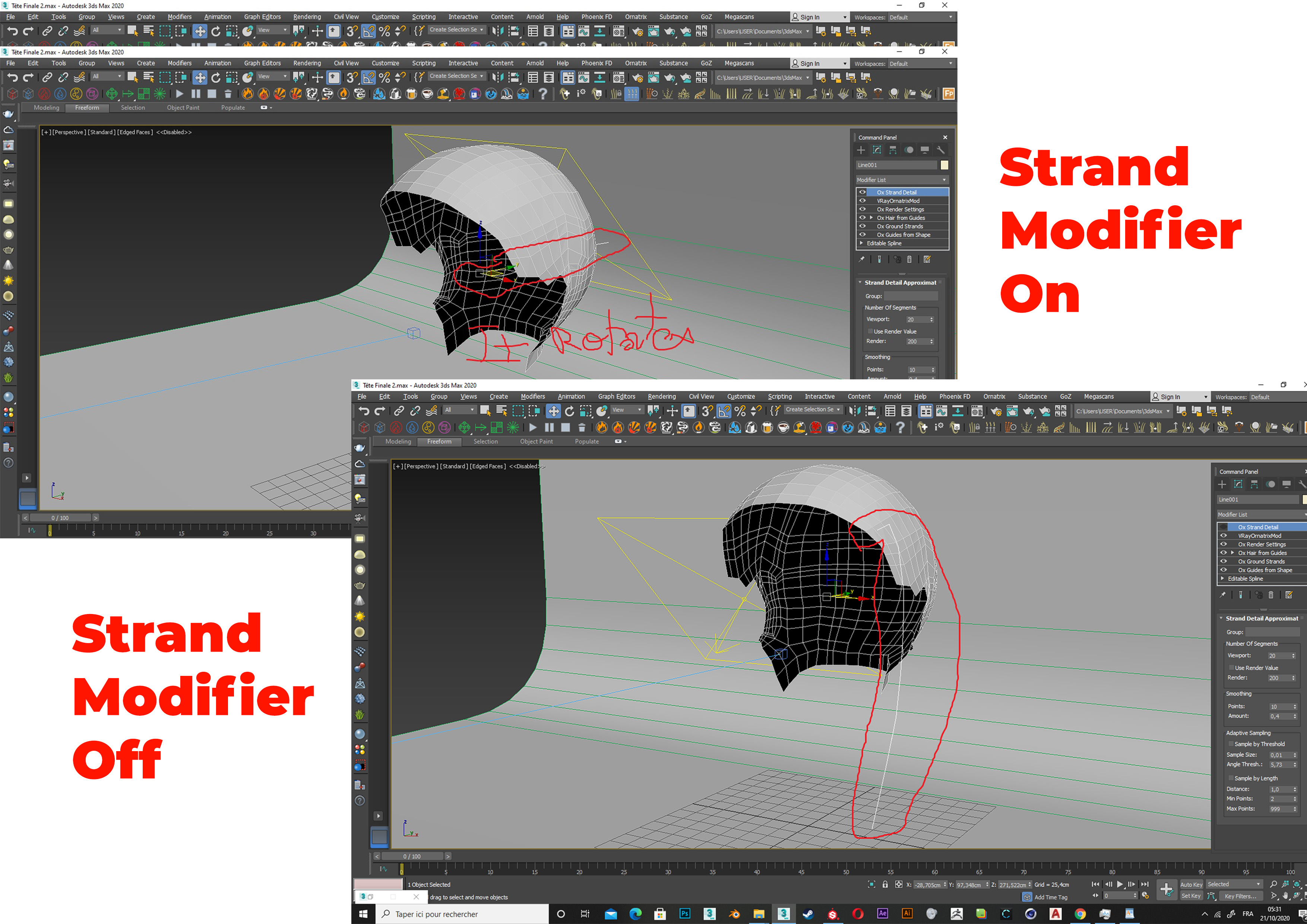 Now , the problem is , when i add the Ox Strand Modfier, it rotates the hair for some reason. See my attachments :