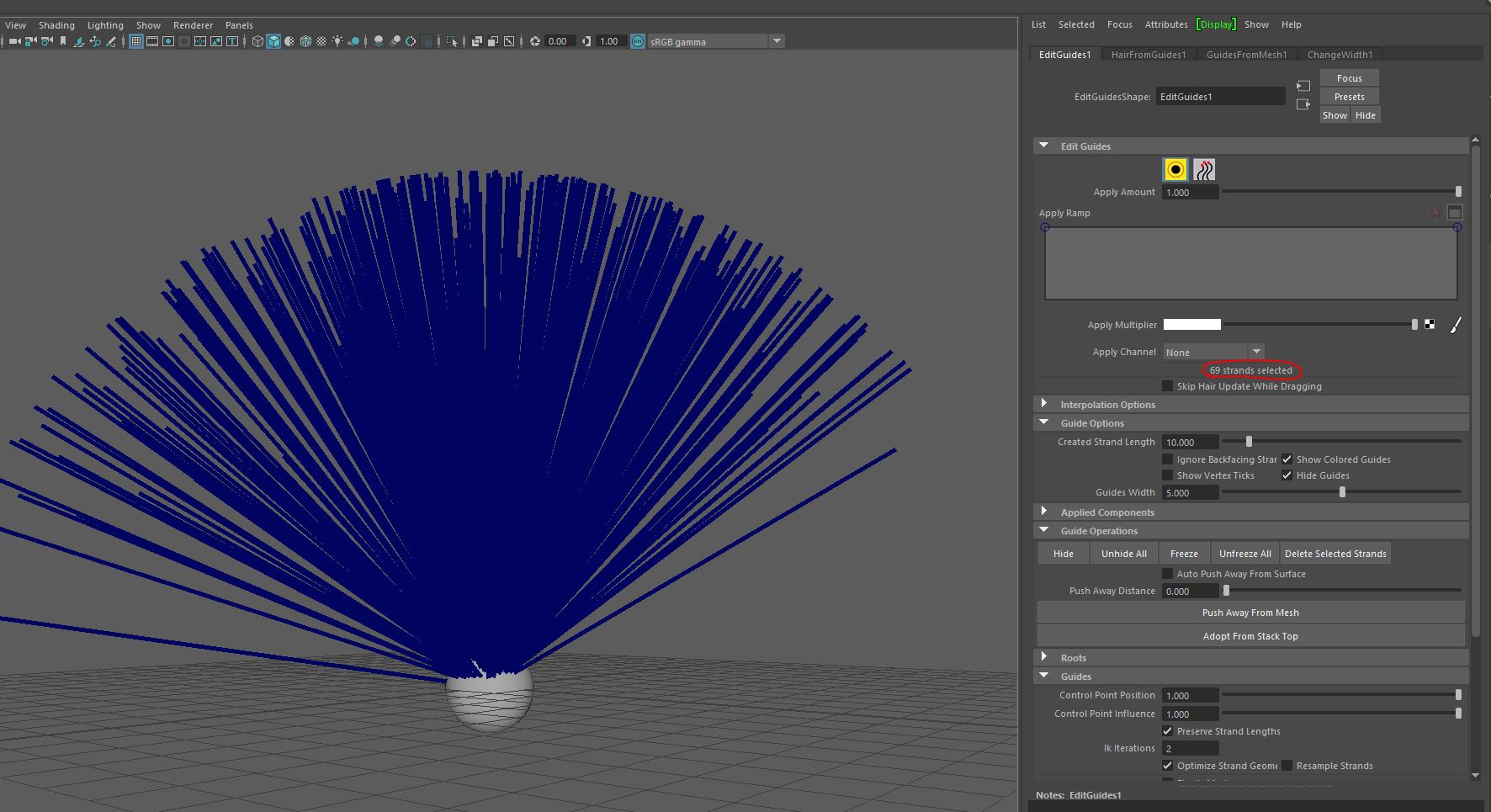 Hi, When I enter both edit strands mode or edit control points mode I'm getting no visual representation of selections made other than # strands selected within the edit guids panel.
