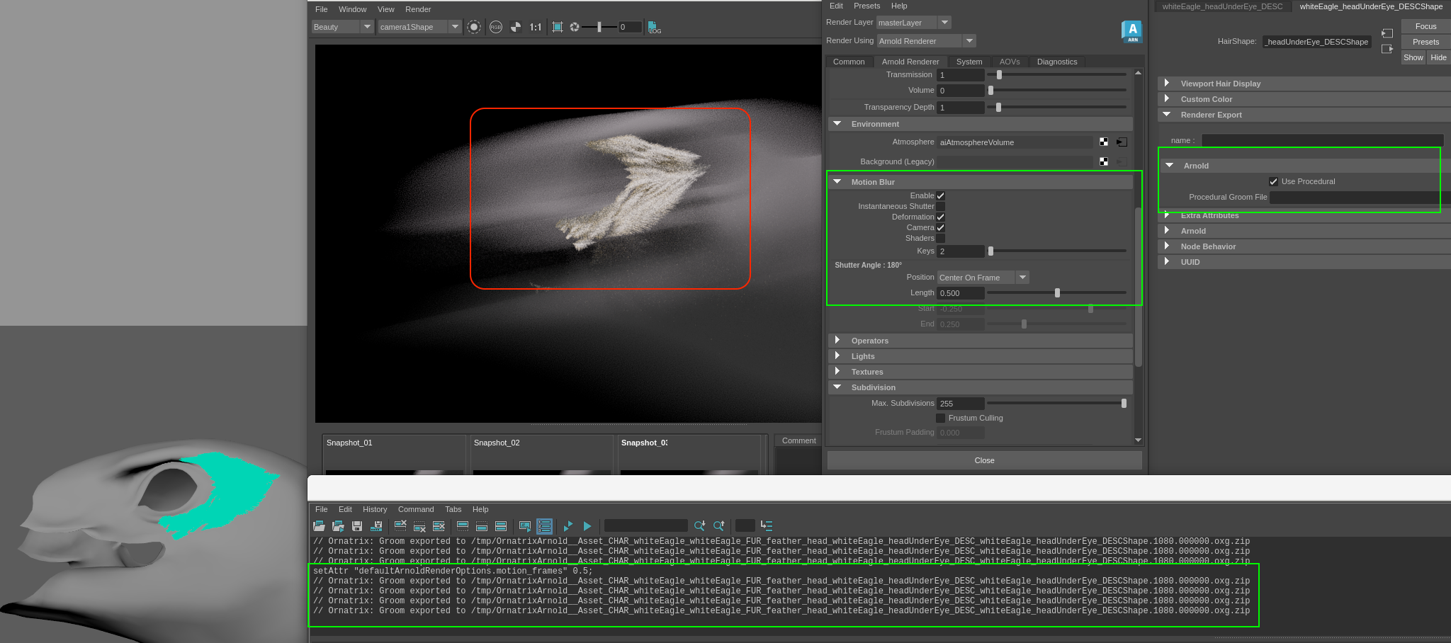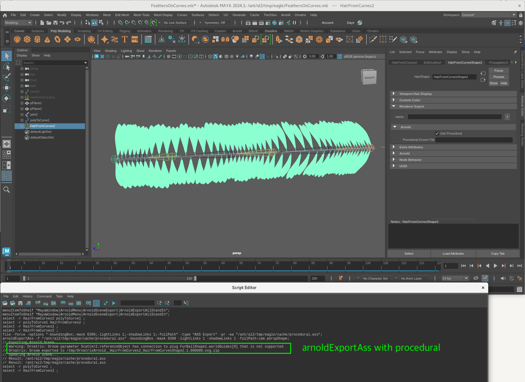 We are working on bird feathers using Onatrix Maya. There are some errors and technical issues during ass export