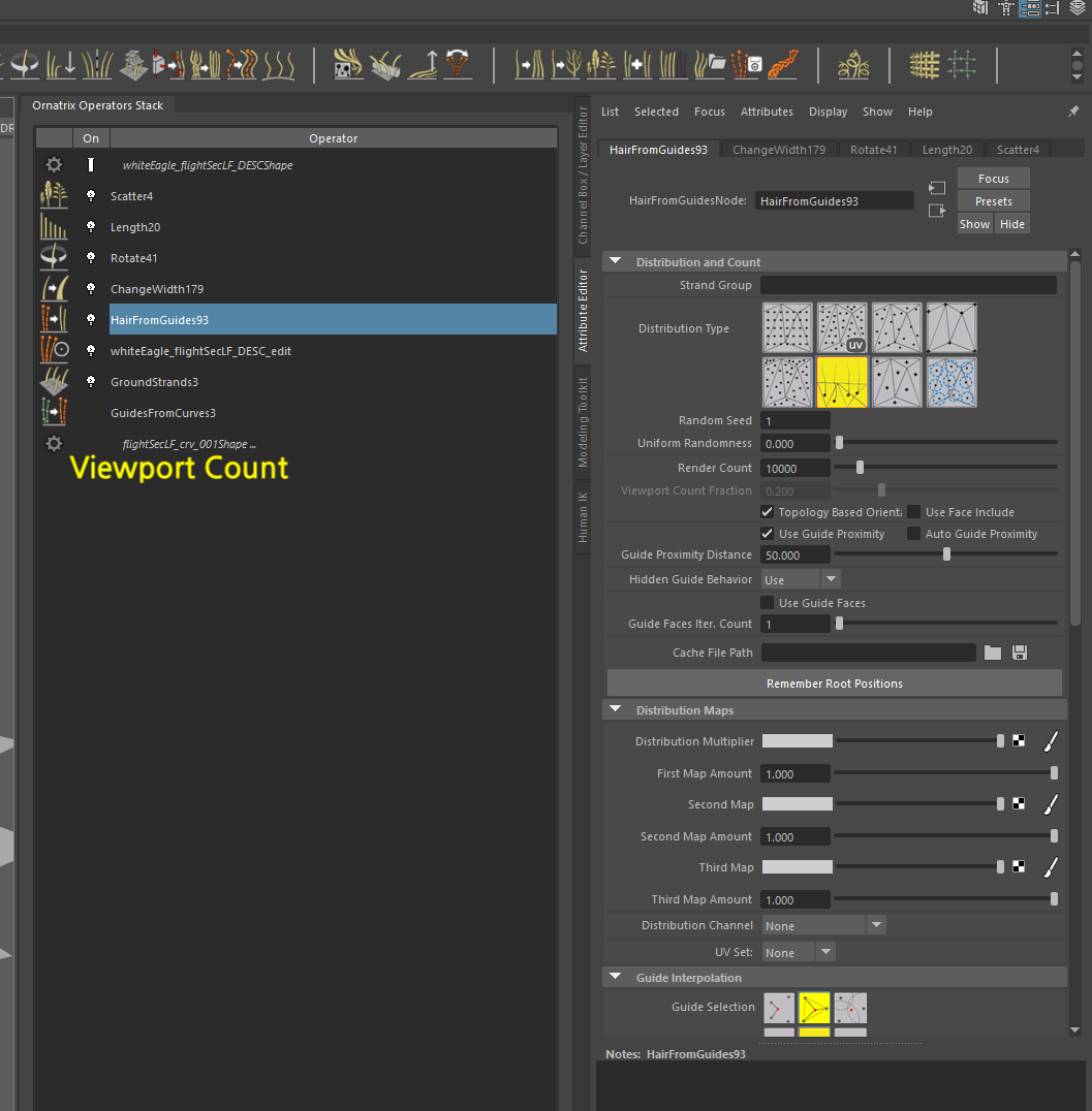 - Before exporting the groom in .ass format, increase the viewport count farction to the meximum in Hair from Guides.
