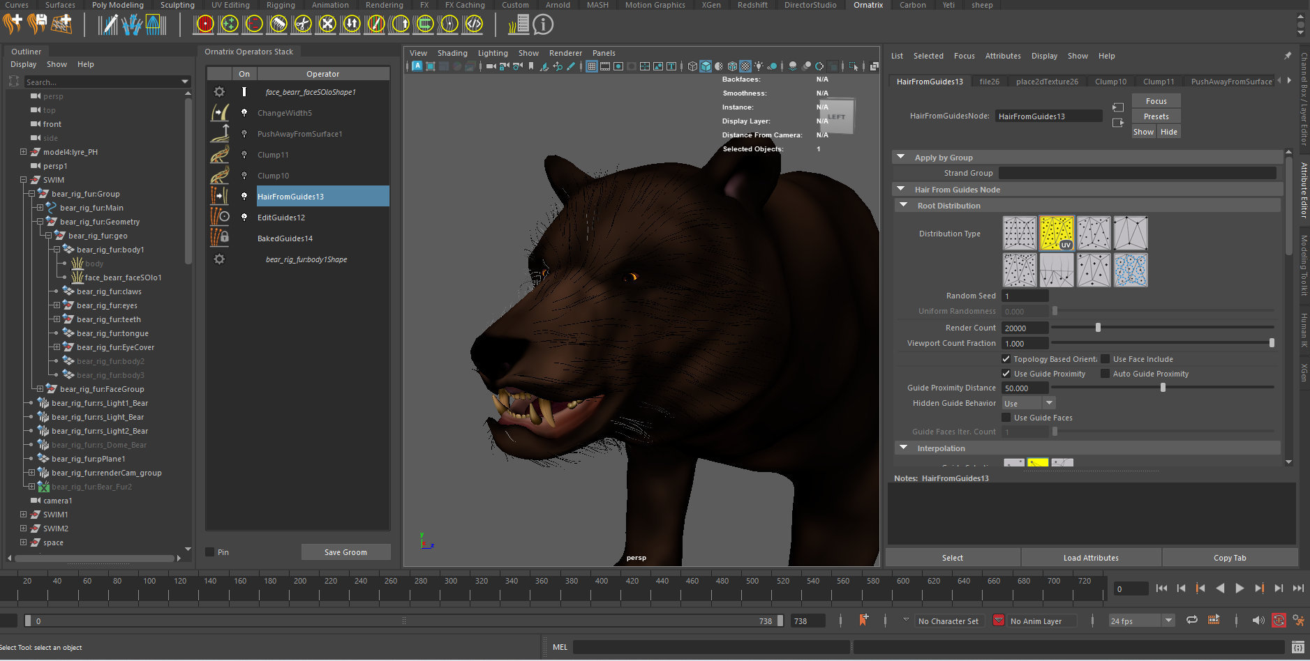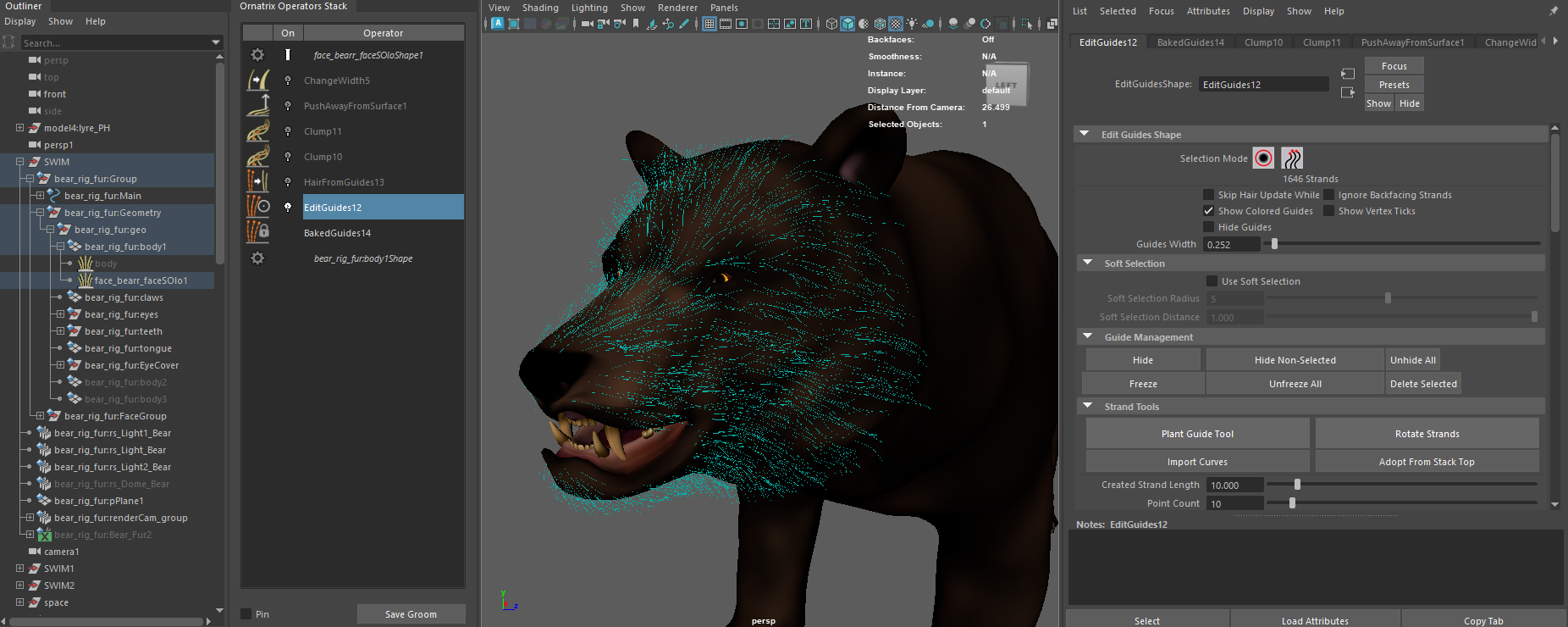 | Recreated the "HairFromGuide" hair count issue with the scene uploaded. The bear scene error goes away when i disable my Yeti plugin |