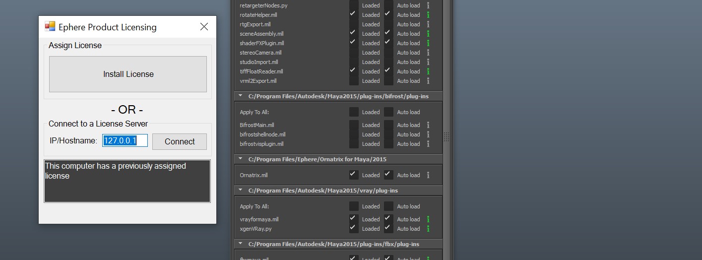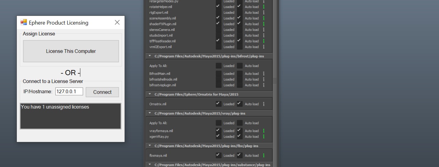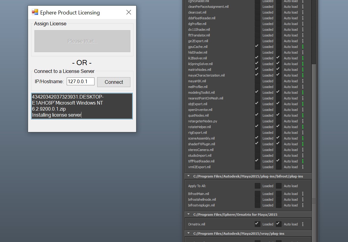| Thank you Marsel, The uninstall worked, and then when reinstalling I followed the offline computer instructions. I can now see the Ephere License Server service running in the Task Manager. When clicking to activate the plugin in Maya, I get a new error, different from before. This is a new "no valid licenses error," and I do not have this directory D:\TeamCity on my machine, so I'm not sure what else to do.