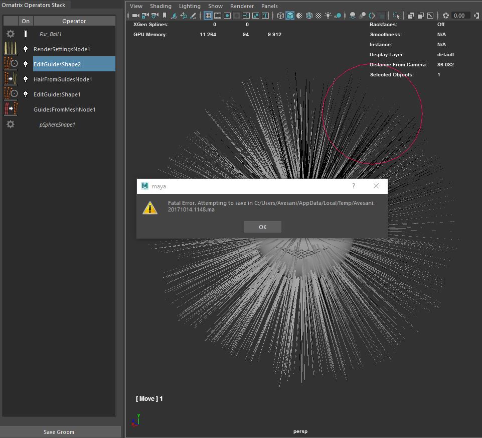 | Hi Diego, This is because you are using EditGuides in top of hair. Edit Guides is only used to manipulate the guides, you should always use it under HairFromGuides. Jeordanis Figuereo (Product Designer. EPHERE Inc.) |
