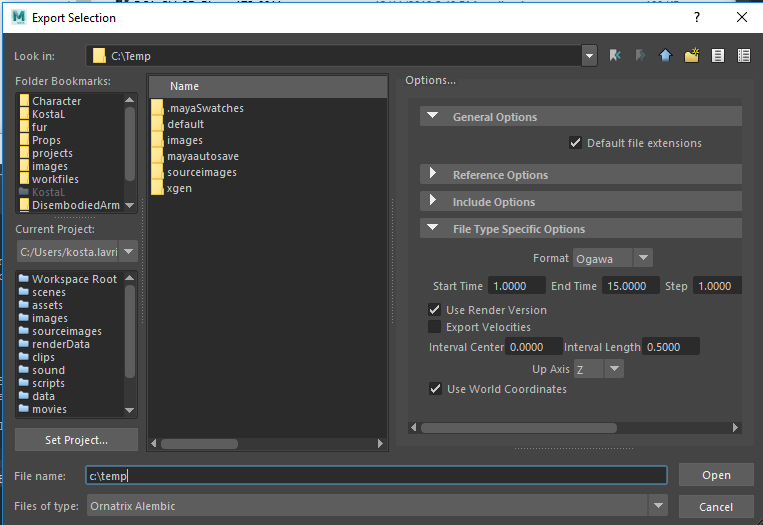 fileOperationsOptionsUICallback ExportActive FileDialogOptionsGrpBoxLayout "C:/Temp/cache01.abc";