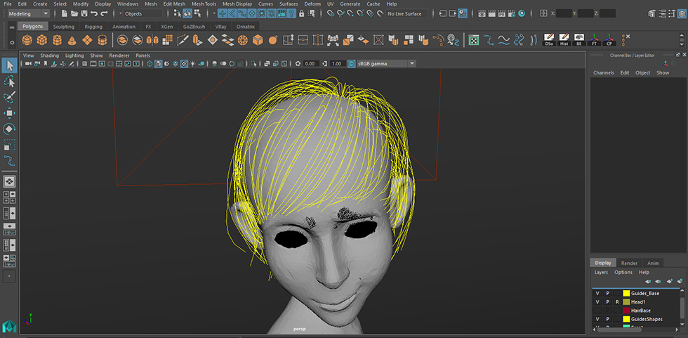 Hair baseHair base and the character were first modeled separately. This can be done in a tool like Z-Brush, in Maya directly, or brought in from another modeling application.