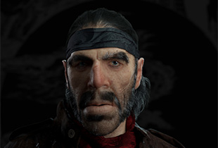 Mustache and beard were created by using Edit Guides to define the shape using brushing. A map was used to distribute the hairs to make them appear denser and more sparse in different areas. Some procedural effects like curling and detail changes were applied in the process.