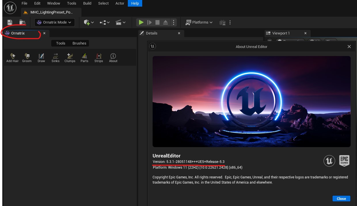 | This could be a licensing issue. Find the file OrnatrixUELicenseServerIP.txt in %LOCALAPPDATA%, or create it if it doesn't exist. Open it in a text editor, add the line "localhost" and save it. Launch Ornatrix again and it should work. Also, when installing Ornatrix, make sure to close UE before launching the Ornatrix installer. Jeordanis Figuereo (Product Designer. EPHERE Inc.) |