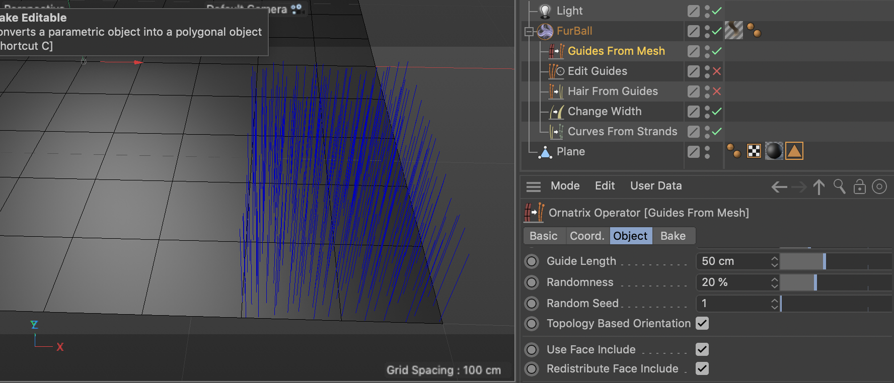 | We added a new option "Redistribute Face Include" to Guides From Mesh to redistribute the guides over the selection, isntead of ignoring all non-selected faces. Can you try if you can now continue with your workflow? |