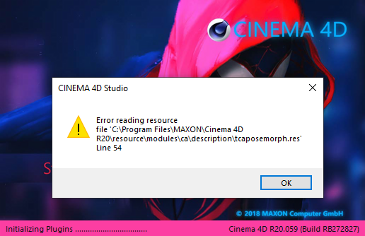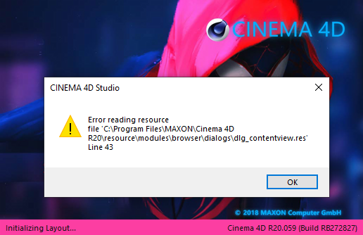 | I know you are using C4D R20 but it's really important to always tell the full version (R20.xxx). This has to match with our currrent supported build, which is R20.059. If it's not the same, I would suggest to upgrade. We're talking to Maxon to try to figure this out, they also suggest to "install Cinema on a new path to have a clean installation; and install your plugin on the new installation to avoid potential side conflicts." |