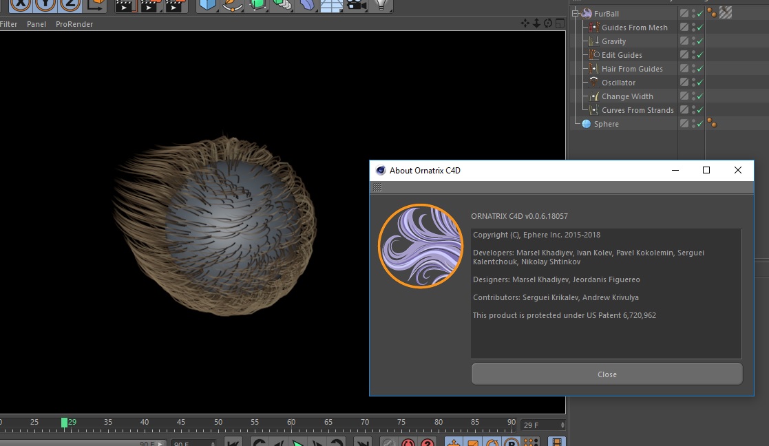 FurBall on top --> Guides From Mesh generates guides --> Hair From Guides reads the guide data and generates hair --> Change Width reads the hair data and set its width. --> End of the stack.