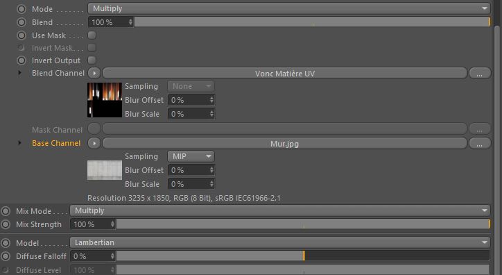 | I checked with my colleagues and there isn‘t a way to get them to blend the way we’re all after in the object manager. https://youtu.be/AY1Z3zLbwQY This tutorial demonstrates how to blend a few materials but the color always overrides the opacity maps. What we’re after is sort of the opposite of this. Maybe this is something your dev could work out with Maxon? |