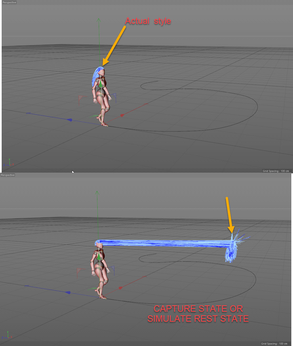 Although the settings need to be understood and set up, so far iv found no simulation using the default settings simulate in a reasonable way, the hair is very erratic and does not seem to settle, even if the limit stretch is on and Attract to initial shape option is used. Maybe some training or videos would be good, or publish a C4D scene with a simulation set up to learn from?