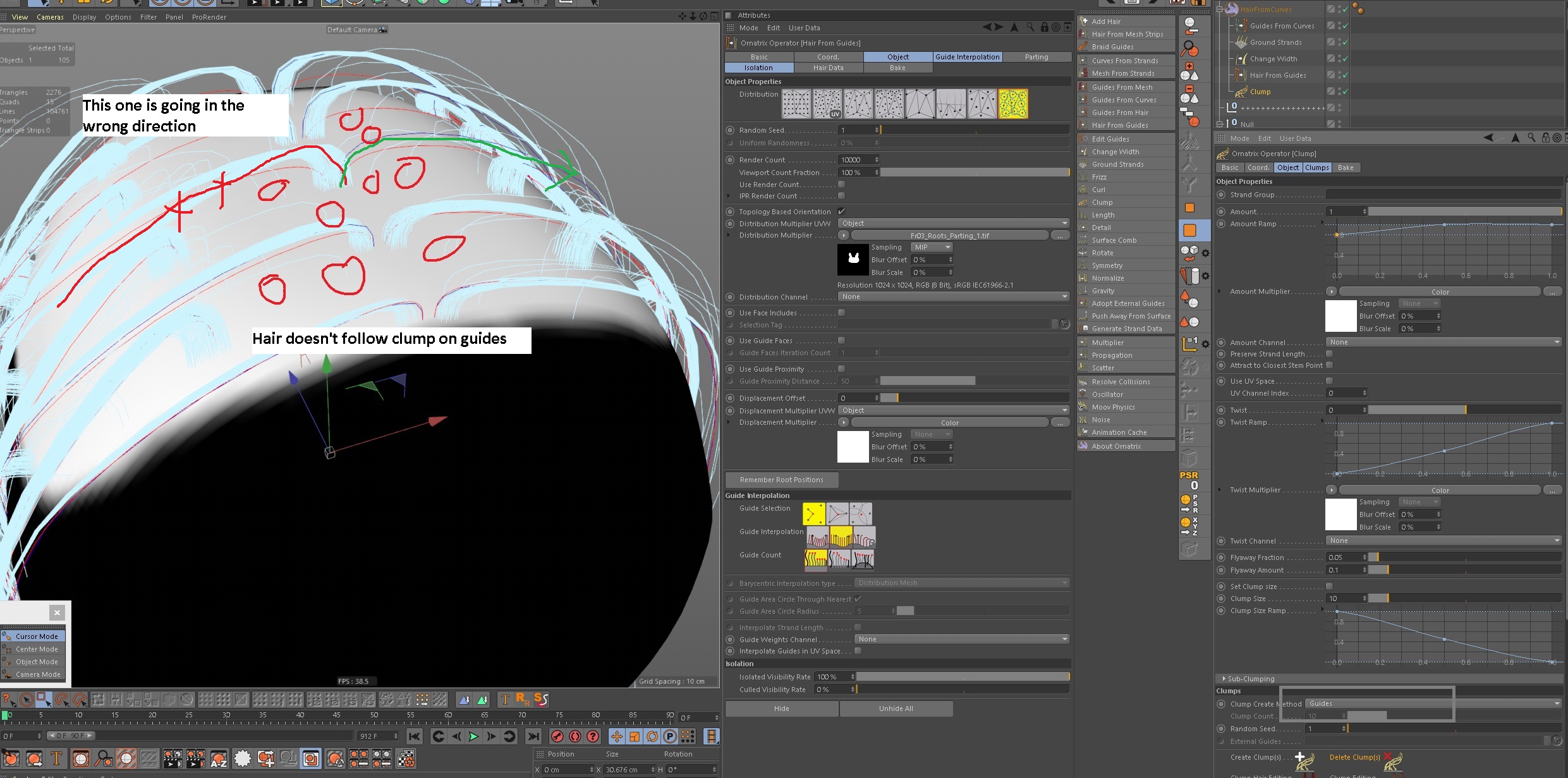 - There are not enough guides/curves to cover the whole scalp