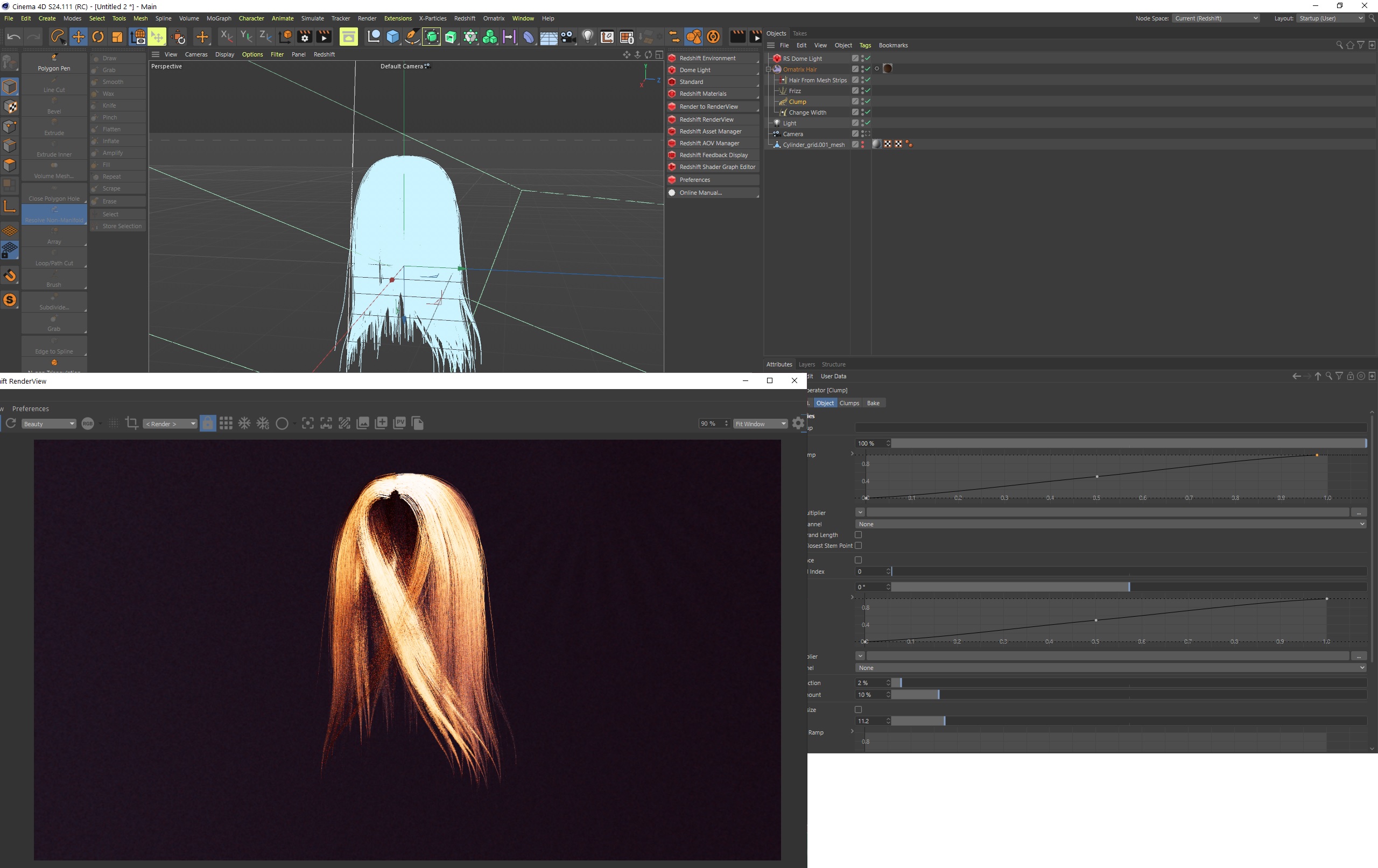 | There's no scalp in the file I posted, but after your suggestion about grounding I made a sphere to ground the strands to. So then it won't work with mesh strips is what you're saying. By the way, this is just a test scene and not the final wig for the character scene |