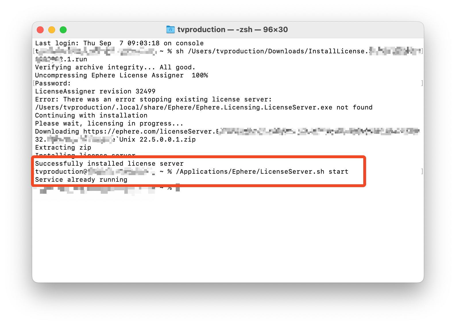| Hi, there was a problem with the installer of the License Server for MacOS (no matter the OS or hardware) Please download the InstallLicense script again and try it. Ivan Kolev (Software Developer, EPHERE Inc.) Discord: ikolev Email: ivan.kolev at ephere com |